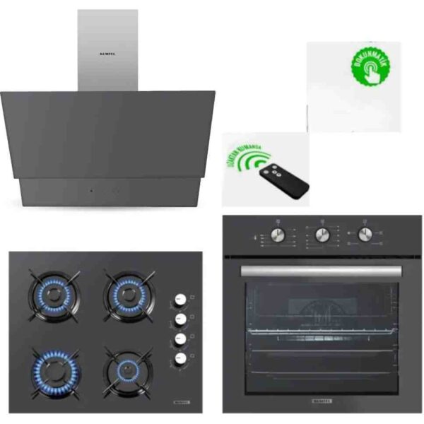 Kumtel Home Siyah Cam Ankastre Set (DA6-830 Davlumbaz + KO-40 TAHDF Ocak+ B66-S2 Fırın)