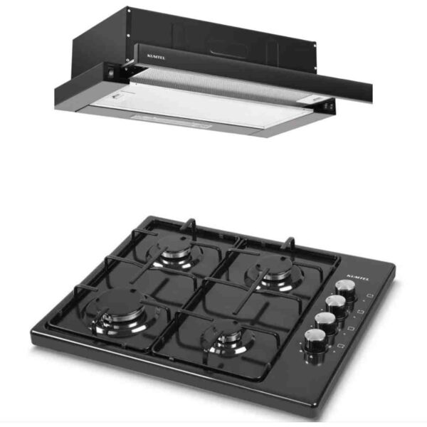 Kumtel 4 Gözlü Ocak + Davlumbaz 2’li Set Siyah