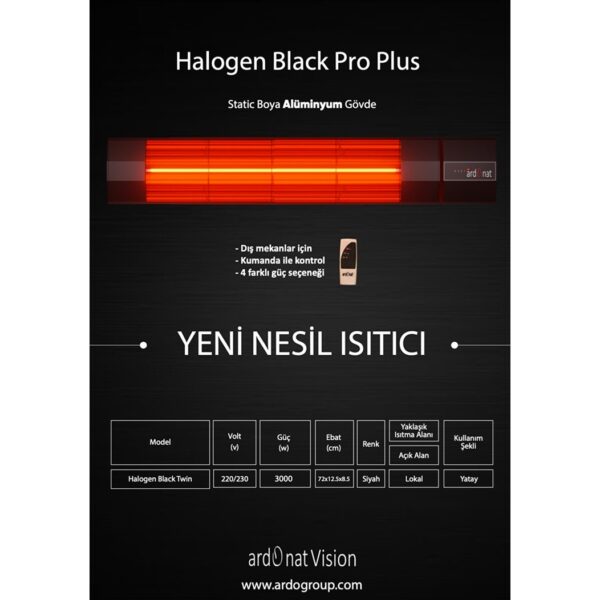 Ardonat Inox Halogen Black Pro Plus 3000 Watt Kumandalı Dış Mekan Isıtıcı.