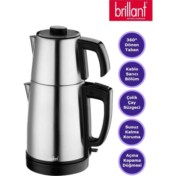 Brillant Inox 30 Bardaklık 1850 Watt Geniş Hazneli Paslanmaz Çelik Çay Makinesi ve Su Isıtıcısı