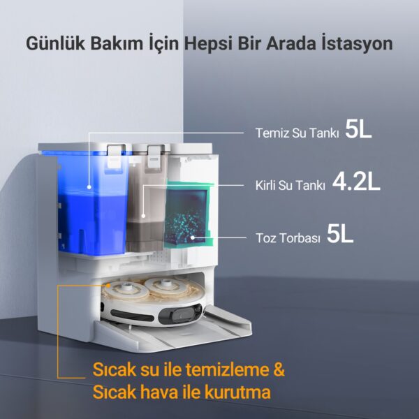 Ezviz RE4 Plus Akıllı Robot Süpürge, Paspas ve Süpürme, Otomatik Toz Boşaltma, Extra Büyük 4Lt Toz Torbası, Halı Tanıma (Ezviz Türkiye Garantili)