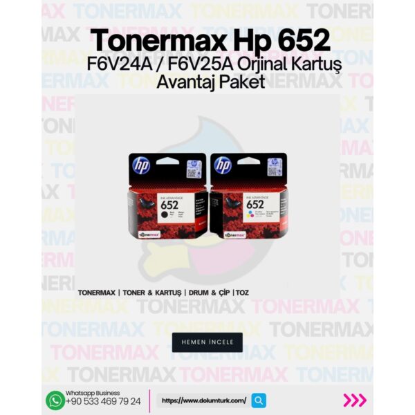HP 652 F6V24A / F6V25A Orjinal Siyah ve Renkli Avantaj Paket Kartuş / HP Deskjet Ink Advantage 3835