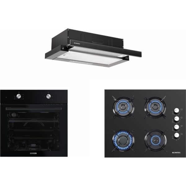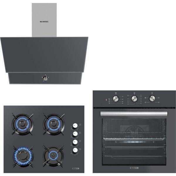 Kumtel Kristal Antrasit Ankastre Set (DA6-830 Davlumbaz – KO-40 TAHDF Ocak – B66 – Sf2 Fırın)
