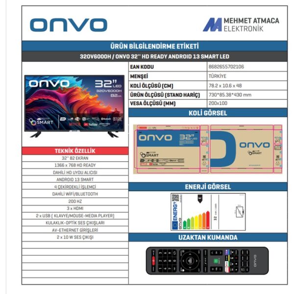 Onvo 32OVF9000H 32’’ 82 Ekran Uydu Alıcılı HD Ready Google LED TV