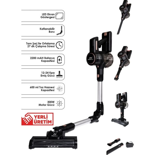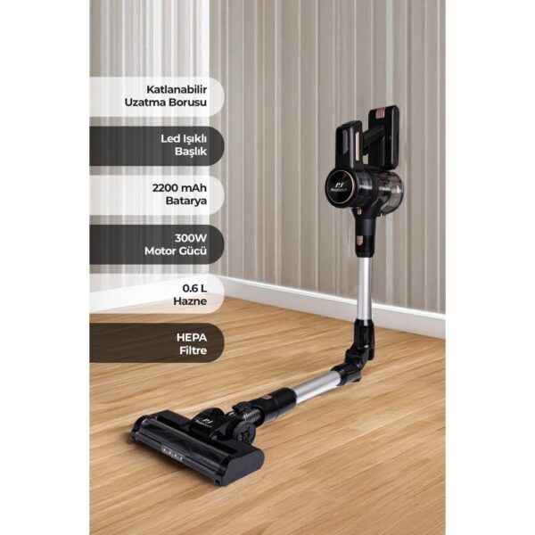 Pirantech ES411 LED Ekranlı Katlanabilir Yüksek Emiş Güçlü 300 Watt Dikey Şarjlı Süpürge