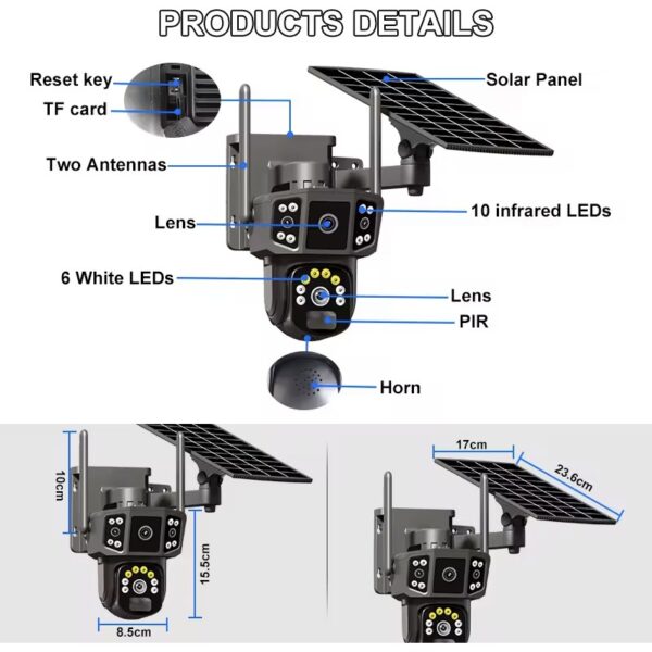 4g Sim Kartlı Solar Güneş Enerjili Full Hd Çift Kameralı Extra Ledli Akıllı Smart Güvenlik Kamerası