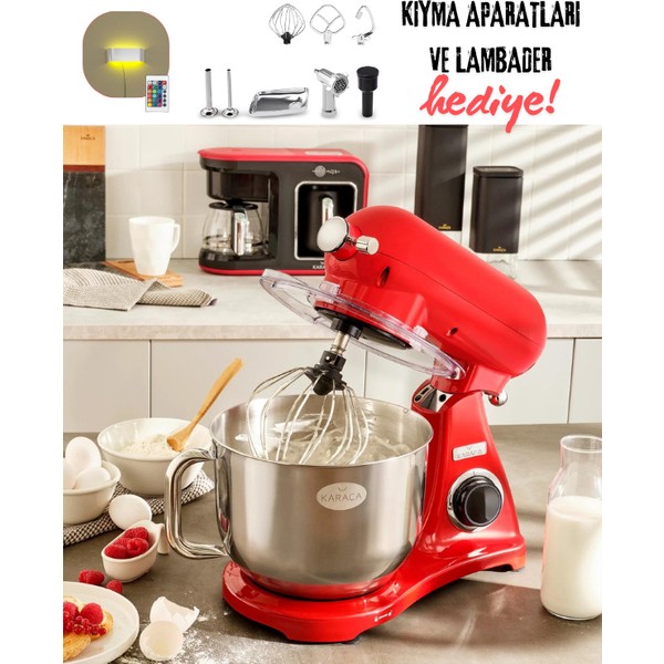 Karaca 2in1 Hamur Yoğurma Kıyma Çekme 1800W Güç 6,2 Lt Geniş Hacimli Full Döküm Mutfak Şefi + Onerous Mutfak Tartısı Hediye