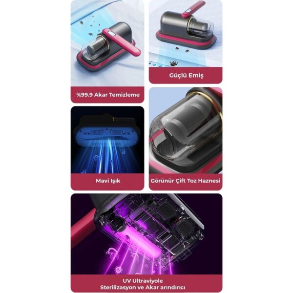 ENSİGA Şarjlı Kablosuz Yatak Kanepe Halı Toz Tüy Süpürge Uv Işınlı Ev El Vakum Temizleme Toz Giderme