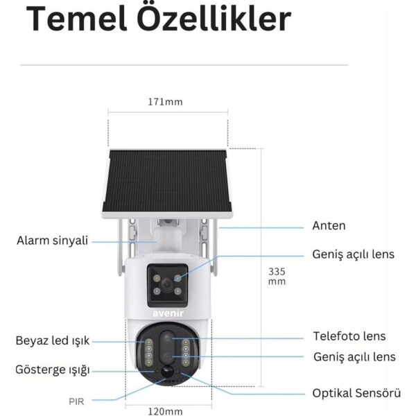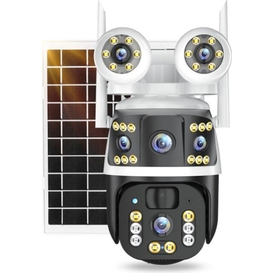 4K, Solar Panelli Kamera, Çift Lens, 10X Zoom, SIM Kart Destekli, IP Kamera, Kablosuz 4G Güneş Enerjili Kamera