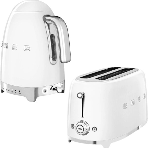 Smeg Beyaz Isı Ayarlı Kettle ve 2×4 Ekmek Kızartma Makinesi Seti