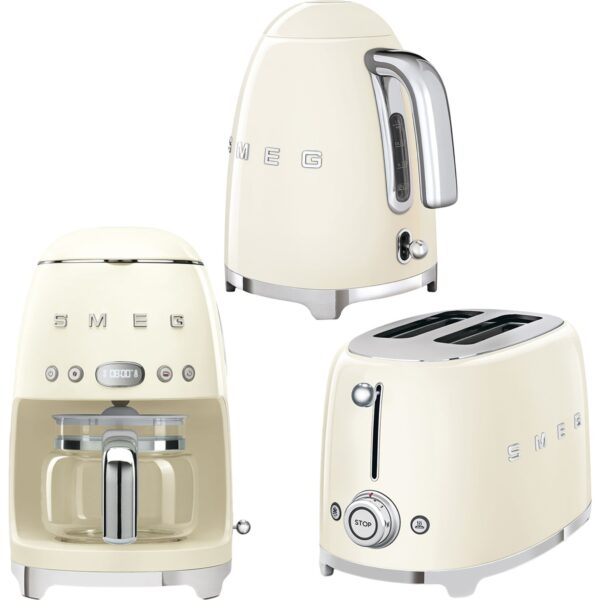 Smeg 50’s Style Krem Kettle – 1×2 Ekmek Kızartma Makinesi ve Filtre Kahve Makine Seti