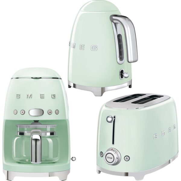 Smeg 50’s Style Pastel Yeşil Kettle – 1×2 Ekmek Kızartma Makinesi ve Filtre Kahve Makine Seti