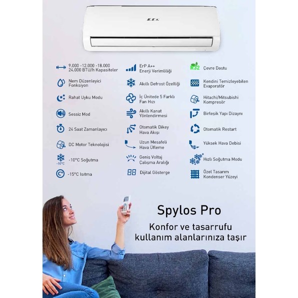 E.C.A Eca Spylos Pro ESA1512A100 A++ 12000 BTU Inverter Duvar Tipi Klima