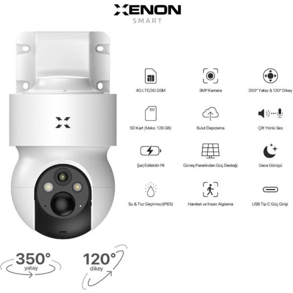 Xenon Smart Akıllı Dış Ortam Kamerası Güneş Enerjili 4g Sim Kartı Destekli Gece Görüşlü Smart Outdoor Kamera X7262