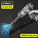 Ally ST-6645 Pro 95000PA Portatif Ev ve Araç Şarjlı El Süpürgesi ALL-35923, güçlü performansı ve kullanışlı tasarımı ile ev ve araç temizliğinizi kolaylaştıracak bir üründür.
