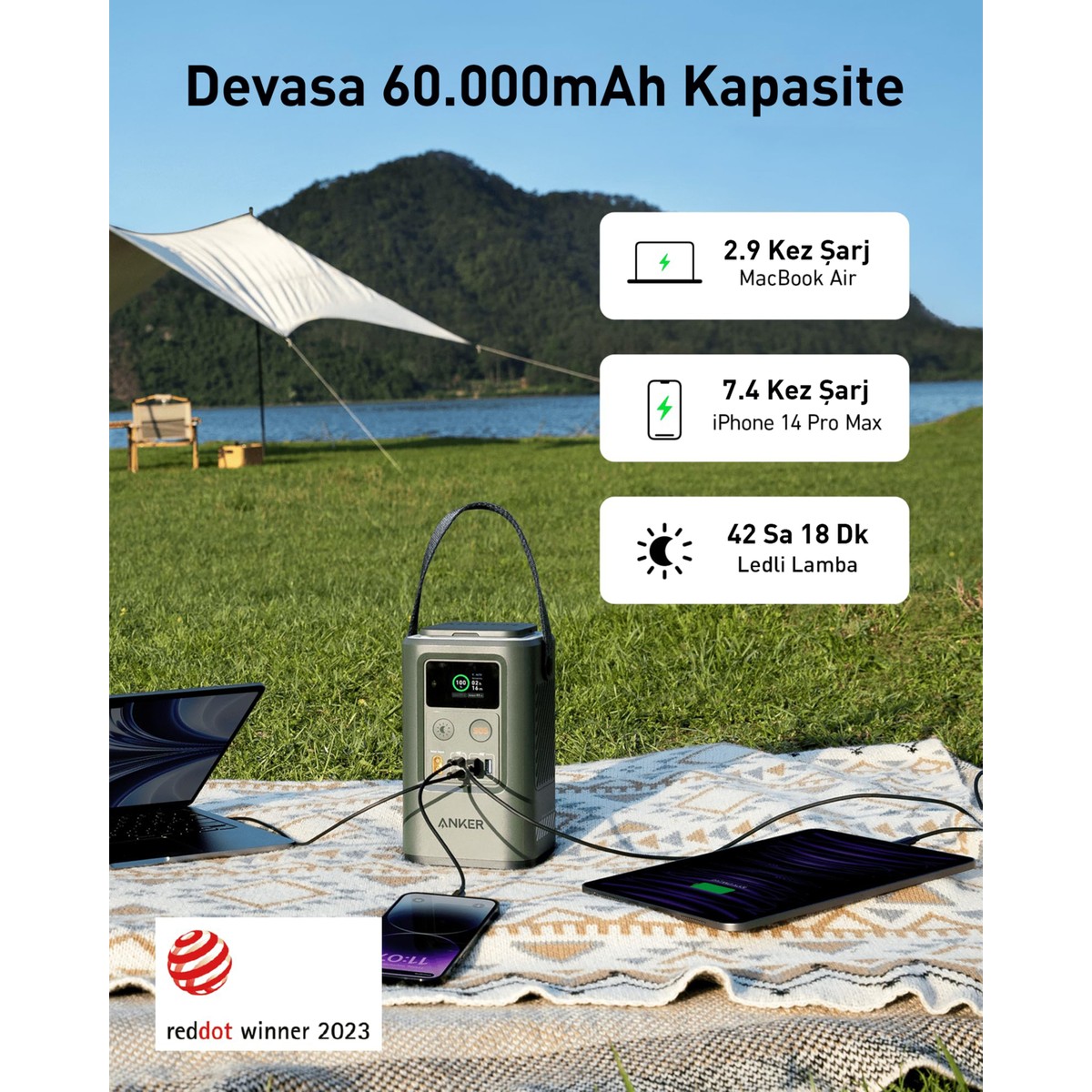 Prijeksiyonumu sarj etmek icin aldim Tam olarak deneyimleyemedim ama orta segment icin 2 3gunluk kamp icin ideal fenerli olmasi iyi telinizi fenerinizi projeksiyonunuzu saej eder