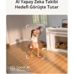 360 derece PTZ (Pan-Tilt-Zoom) özelliği sayesinde kamerayı uzaktan yönlendirebilir ve istediğiniz açıya ayarlayabilirsiniz. Wi-Fi 6 teknolojisi ile hızlı ve güvenilir bir bağlantı sağlar. Yapay zeka teknolojisi sayesinde hareket algılama ve yüz tanıma gibi özellikleri destekler.