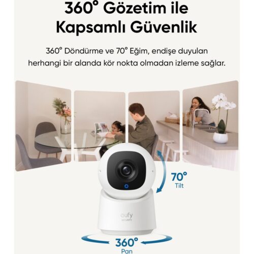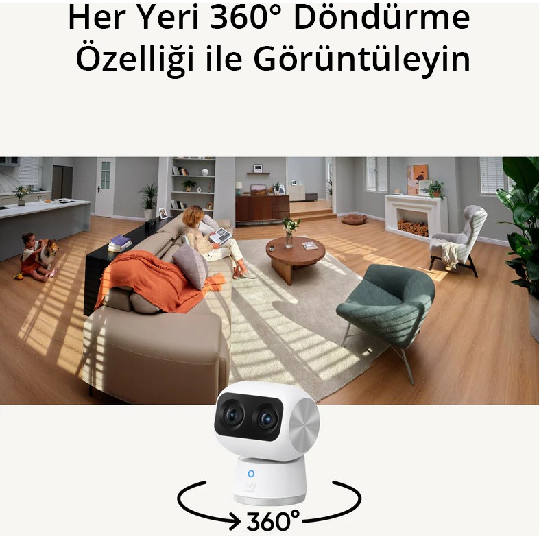 Anker Eufy Security Çift Lensli 4K UHD 360 Derece Dönebilen Kızılötesi Gece Görüşlü Akıllı IP Kamera S350 – 8x Zoom – 360° PTZ – Wi-Fi 6 – Yapay Zekalı Kamera (Anker Türkiye Garantili)