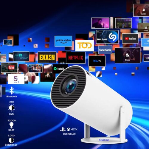 Kiwitime HD Mini Taşınabilir Projeksiyon Cihazı 1280*720P Android Wifi Bluetooth 240 ANSI