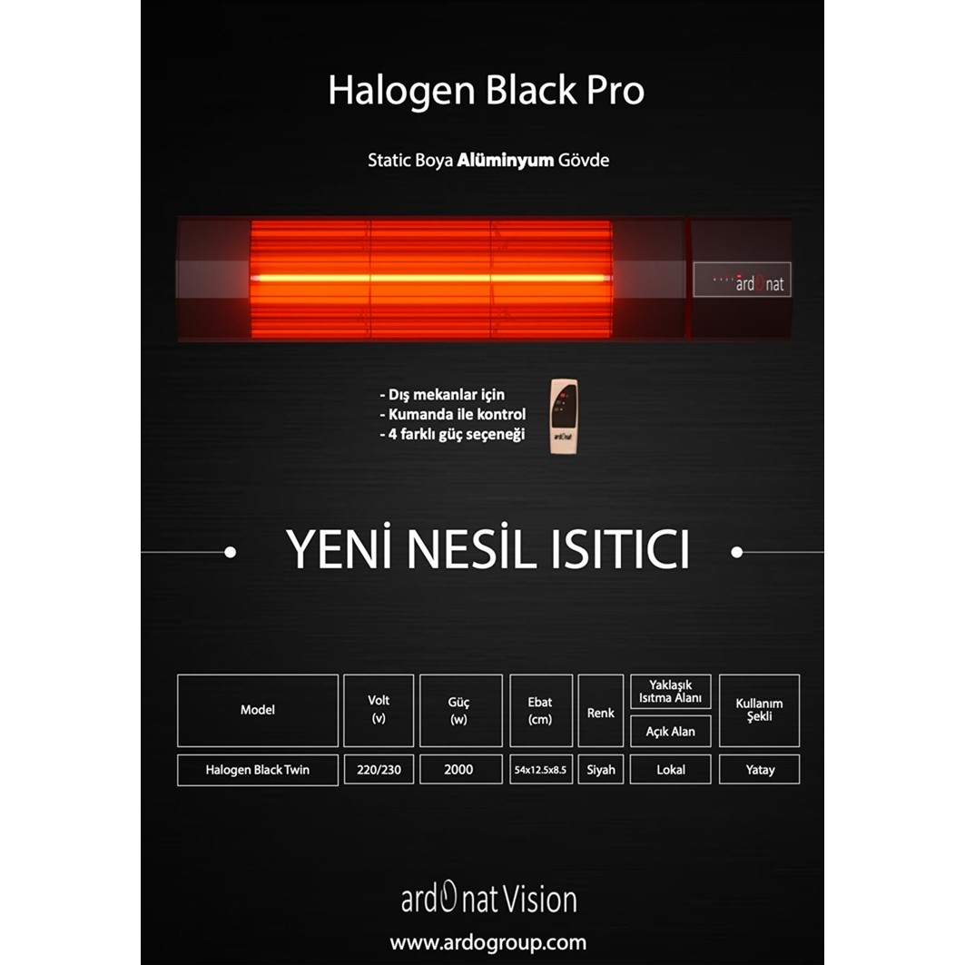 Ardonat Inox Halogen Black Pro 2000 Watt Kumandalı Dış Mekan Isıtıcı.cafe,işyeri,balkon