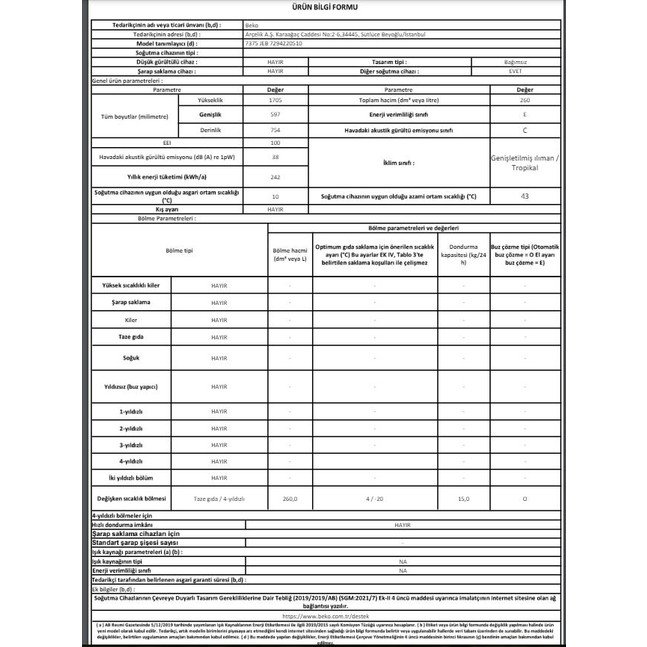 Beko 7375 Jeb joker özellikli No Frost Derin Dondurucu( 10 yıl motor garantisi) için 1 değerlendirme