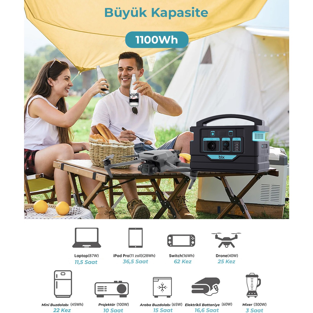 Bix PS300K 300000MAH 1110WH 1000W AC Priz 3*Usb-A 100W Type-C Giriş ve Çıkış Özellikli Hızlı Şarj Teknolojili Taşınabilir Şarj Cihazı Power Station Güç İstasyonu