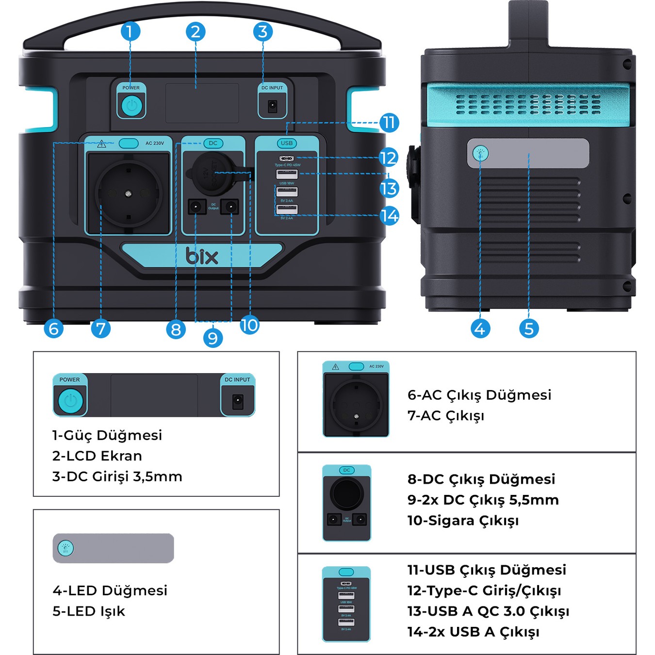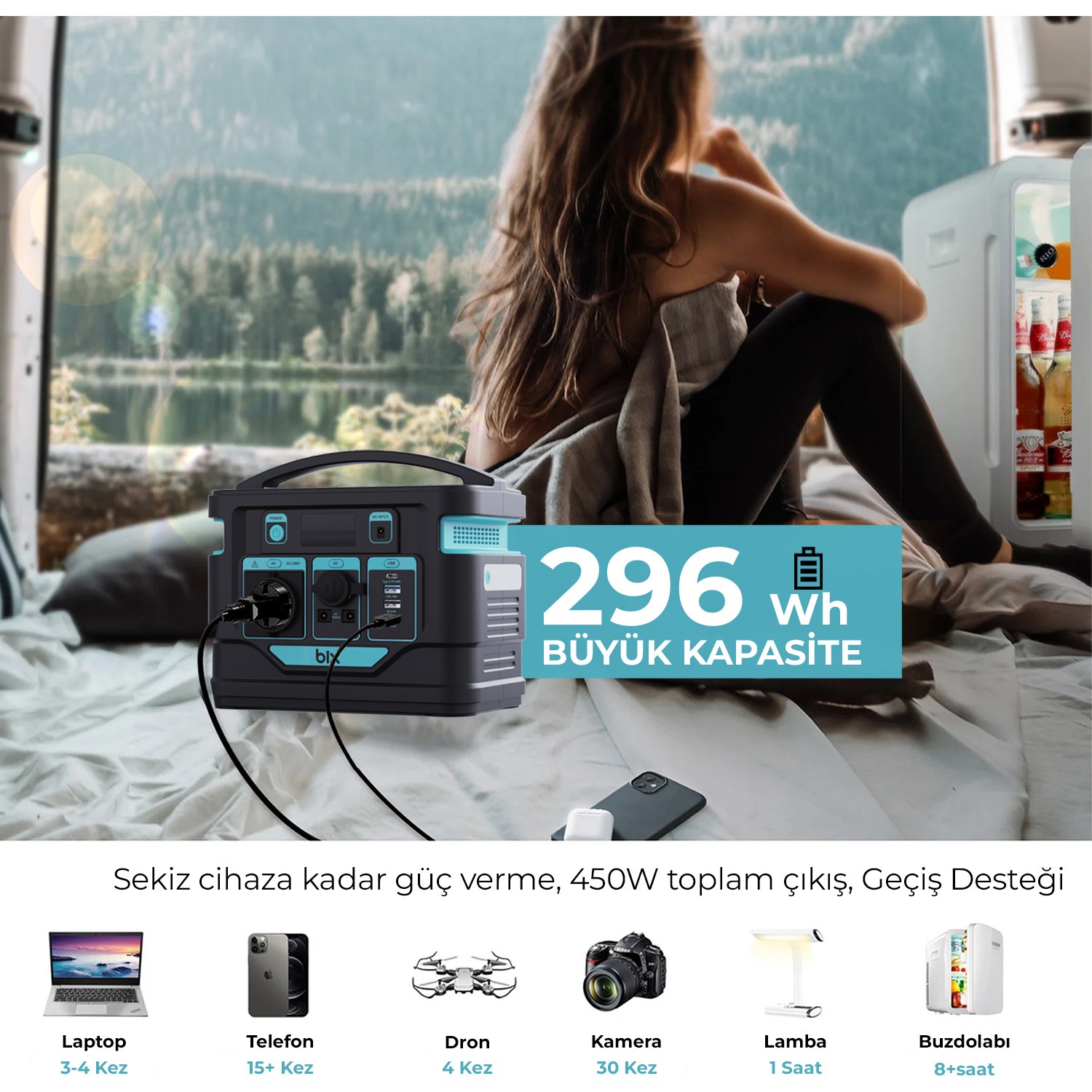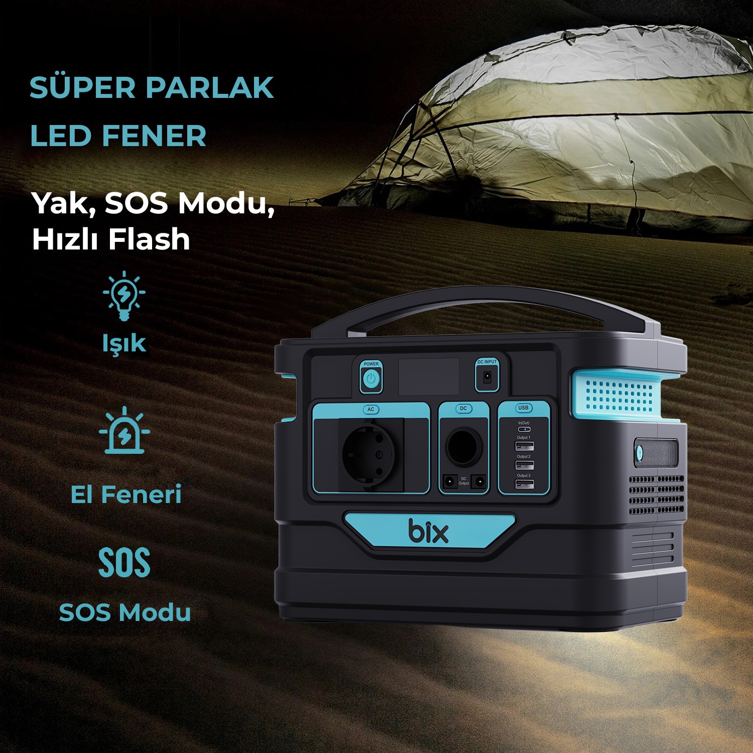Bix PS80K 80000MAH 296WH 300W AC Priz, 3*Usb-A, 45W Type-C Şarj Taşınabilir Şarj Cihazı Sos Destekli Power Station Güç İstasyonu
