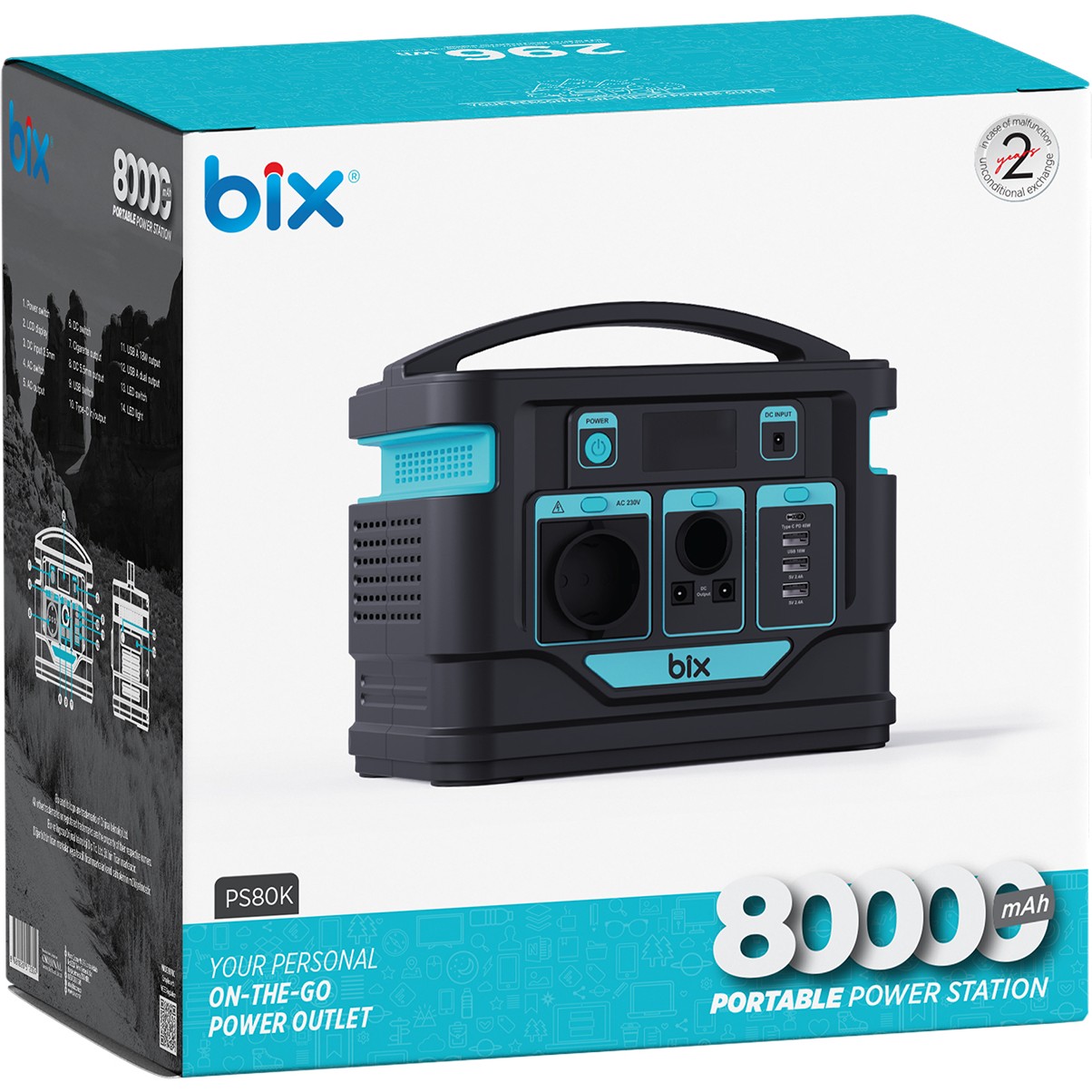 Bix PS80K, 80000mAh kapasitesi ve 296Wh enerji depolama kapasitesi ile güçlü bir taşınabilir şarj cihazıdır. 300W AC priz, 3 adet USB-A ve 1 adet 45W Type-C şarj portu bulunmaktadır. Sos destekli güç istasyonu olarak kullanıcıların elektronik cihazlarını şarj etmelerine olanak sağlar. Taşınabilir yapısı sayesinde seyahatlerde, kamp alanlarında veya acil durumlarda kullanılabilir. Güvenli ve hızlı şarj imkanı sunan Bix PS80K, kullanıcıların enerji ihtiyaçlarını karşılamak için ideal bir seçenektir.