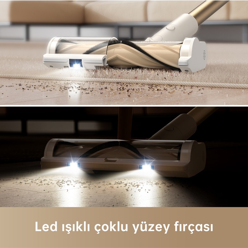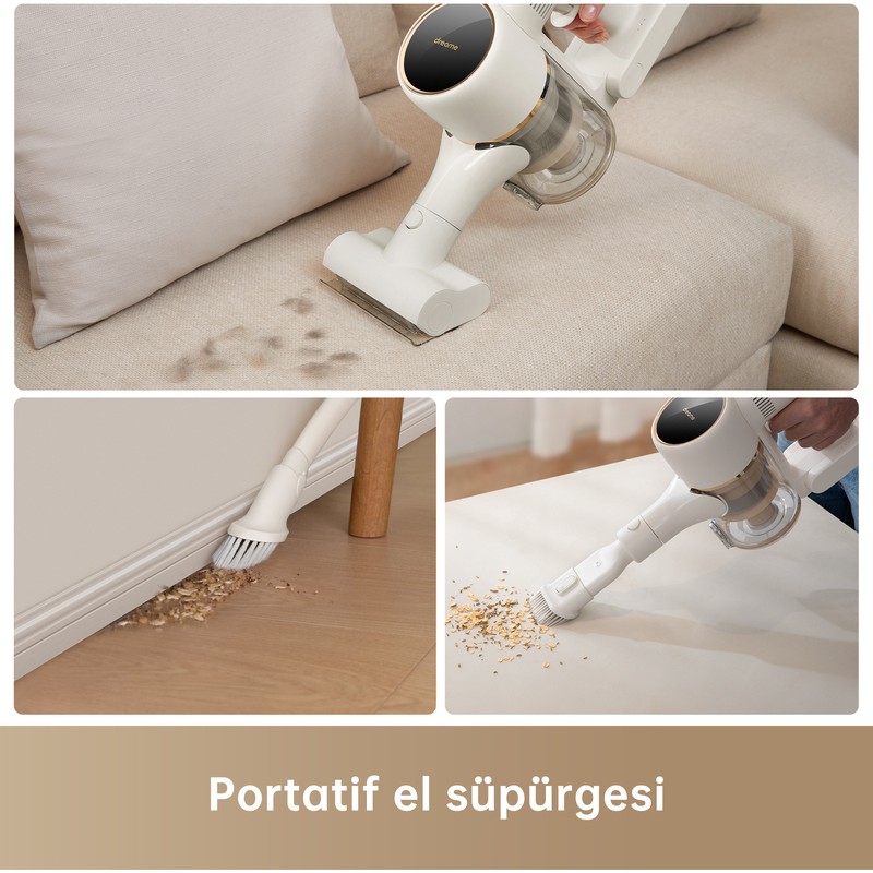 Dreame R10 Süpürge, 120AW gücüyle yüksek performanslı bir dikey süpürge olarak tasarlanmıştır. Led farları sayesinde karanlık köşeleri bile temizlemenizi sağlar. Anti-Tangle fırçası sayesinde saç ve kıl gibi maddelerin sıkışmasını önler. 60 dakikaya kadar şarj edilebilir pil özelliği ile uzun süreli kullanım imkanı sunar. Ayrıca el süpürgesi olarak da kullanılabilen bu ürün, derin temizlik için idealdir ve sert zeminlerden halılara kadar geniş bir yelpazede kullanılabilir.
