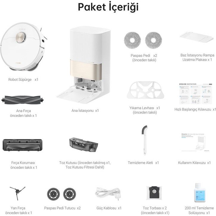 Dreame X40 Ultra Robot Süpürge Beyaz, evinizdeki zeminleri temizlemek için tasarlanmış akıllı bir cihazdır. Yüksek emiş gücü sayesinde halılar, parke ve fayans gibi farklı zemin tiplerinde etkili bir temizlik sağlar. 2700 Pa emiş gücü ile derinlemesine temizlik yapabilir ve evinizdeki toz, kir ve tüyleri kolayca emebilir.