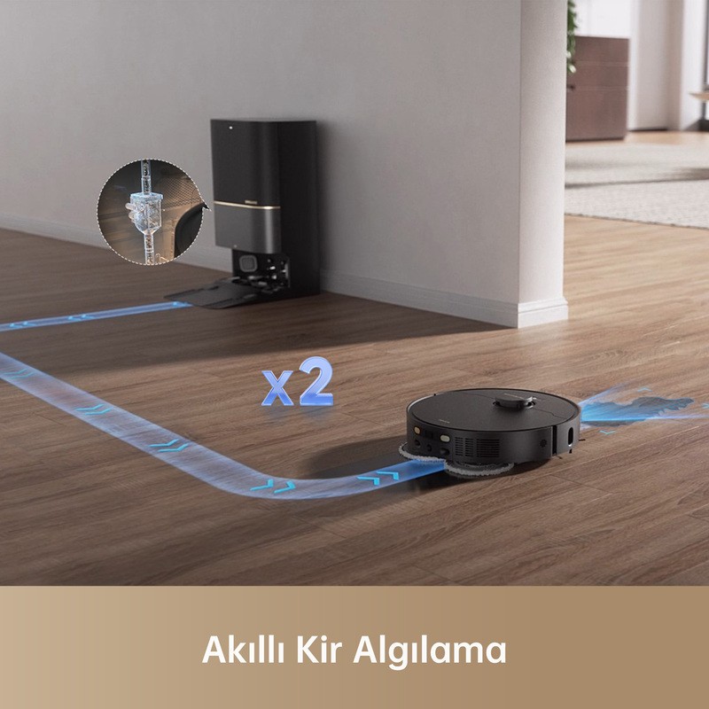 Dreame X40, akıllı sensörleri sayesinde evinizdeki engelleri algılar ve etrafında dolaşırken çarpma riskini en aza indirir. Ayrıca, odalar arasında geçiş yaparken harita oluşturarak daha verimli bir temizlik sağlar. 5200 mAh bataryası ile uzun süreli kullanım imkanı sunar ve otomatik olarak şarj istasyonuna dönerek şarj olabilir.