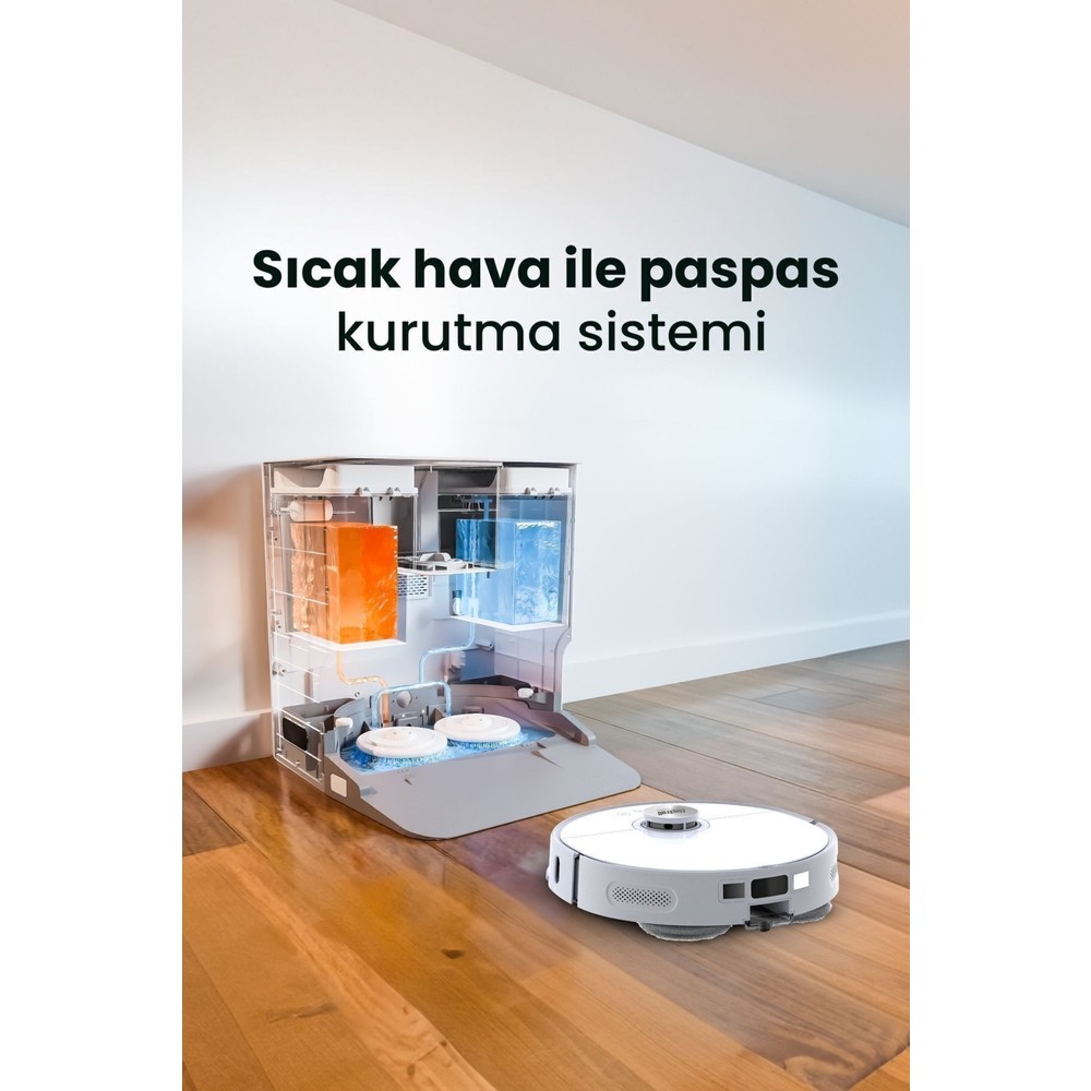 Ürünü detaylı kullandıktan sonra yorum yapmak istedim gercekten çok başarılı çekme gücü olsun paspaslaması olsun mükemmel herseyi otomatik kendisi yapıyor paspaslaması temiz su alması vermesi paspas yıkaması kurulaması var toz toplaması boşaltması da otomatik herkese tavsiye ederim.