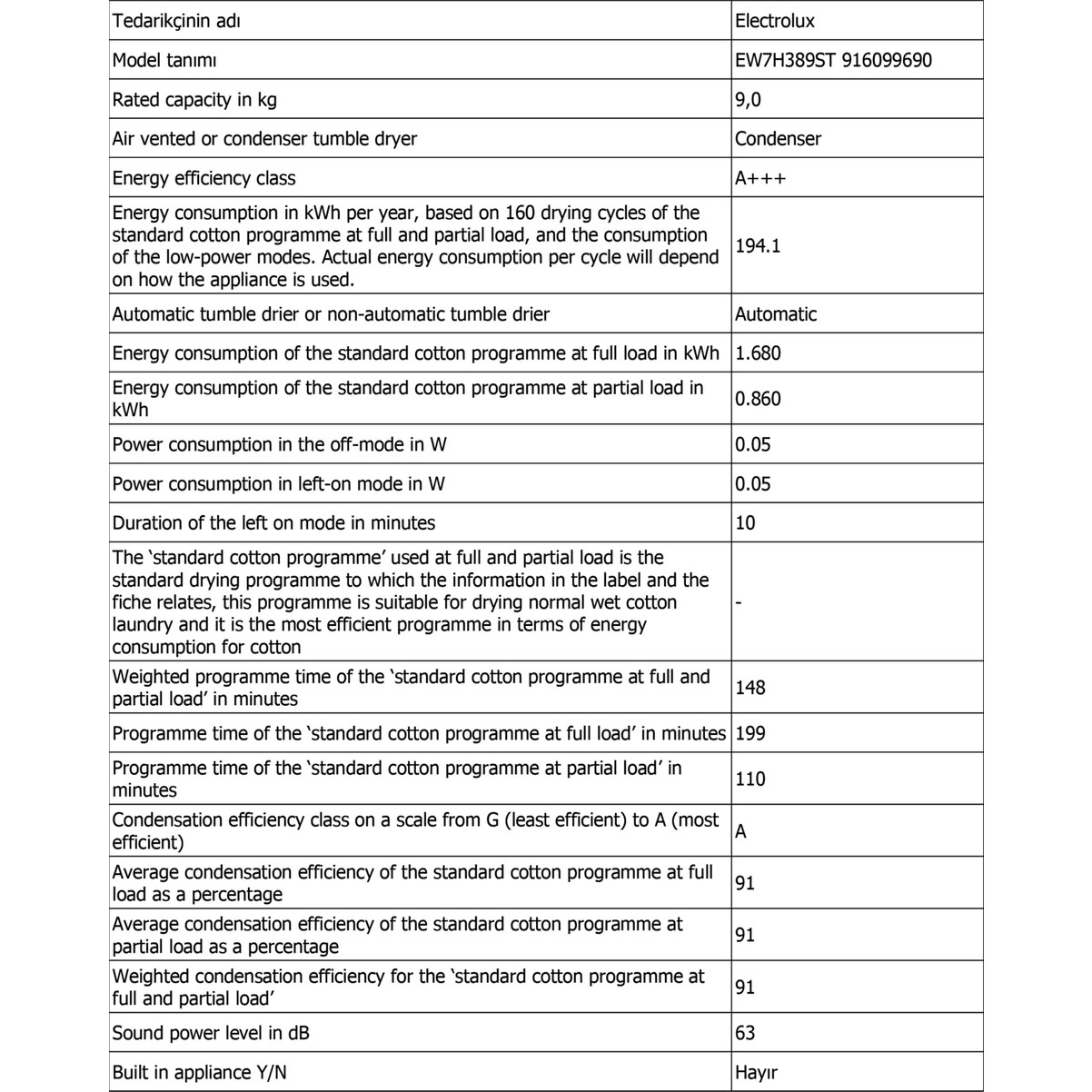 Electrolux EW7H389ST Camasır Kurutma Isı Pompalı