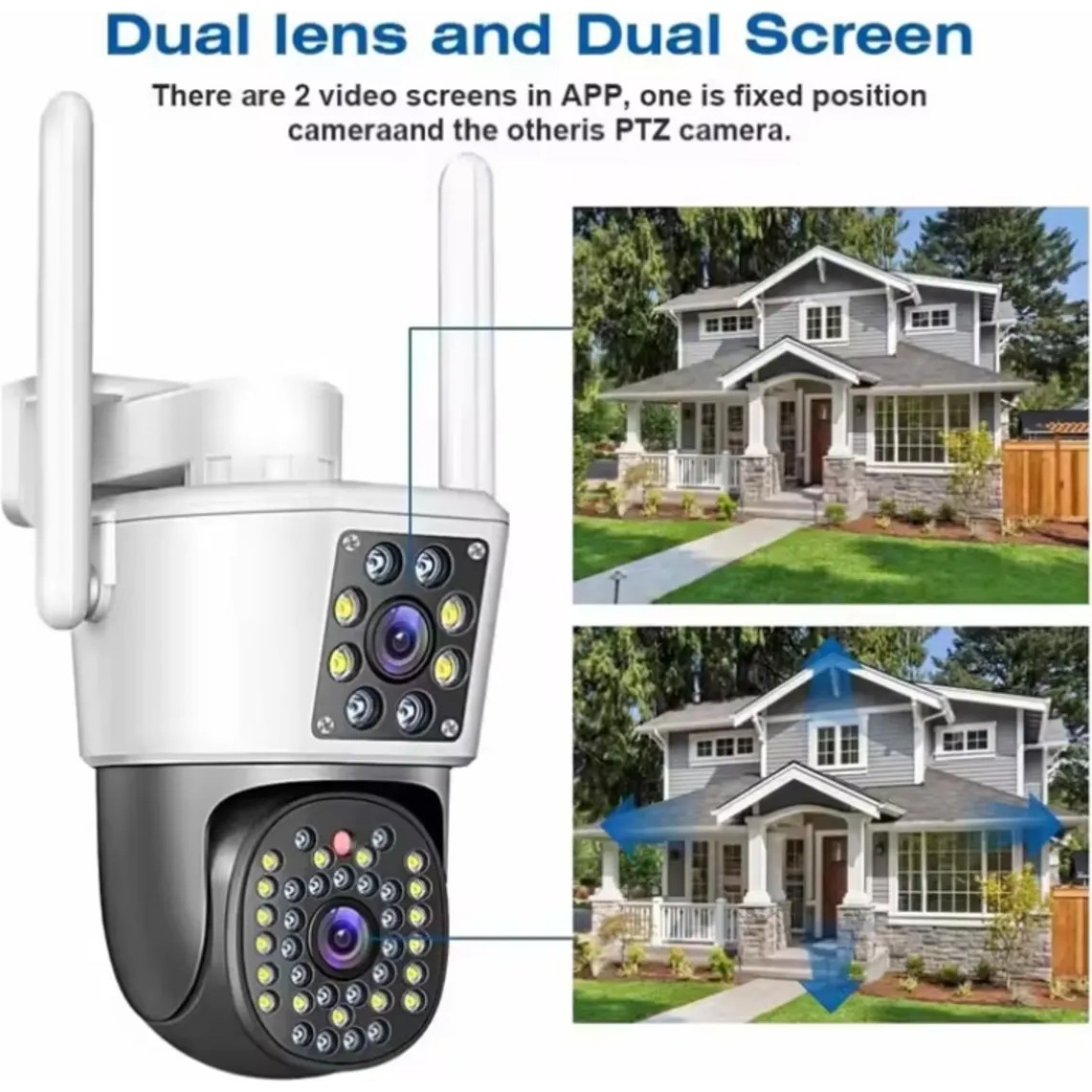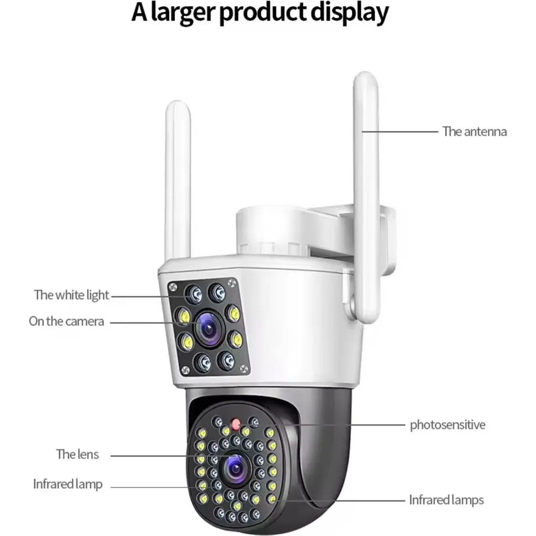 Enshall 4mp 4K Ultra Hd Gece Görüşlü Çift Lensli Hareket Takipli Alarmlı Dış Mekan Ip Güvenlik Kamerası