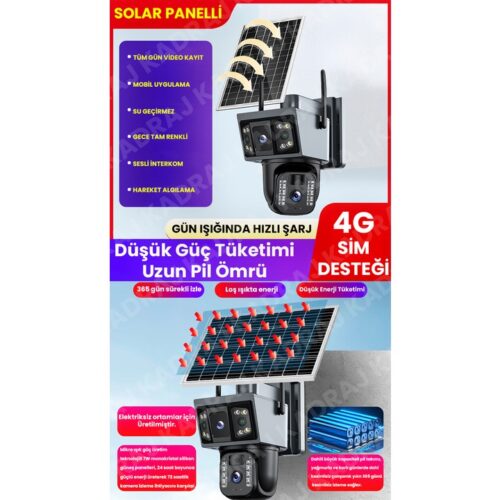 O-kam 3915 4g 6mp Dual Lens Güneş Panelli Solar Sirenli Güvenlik Kamerası