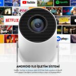 Vankyo Sunspark 500W Android TV 1080P Destekli Projeksiyon Cihazı 5G Wi-Fi + 5.1 Bluetooth – LCD LED – 240 Inç Yansıtma-Dahili Hoparlör-PS5/XBOX/HDMI/USB/VGA/AV