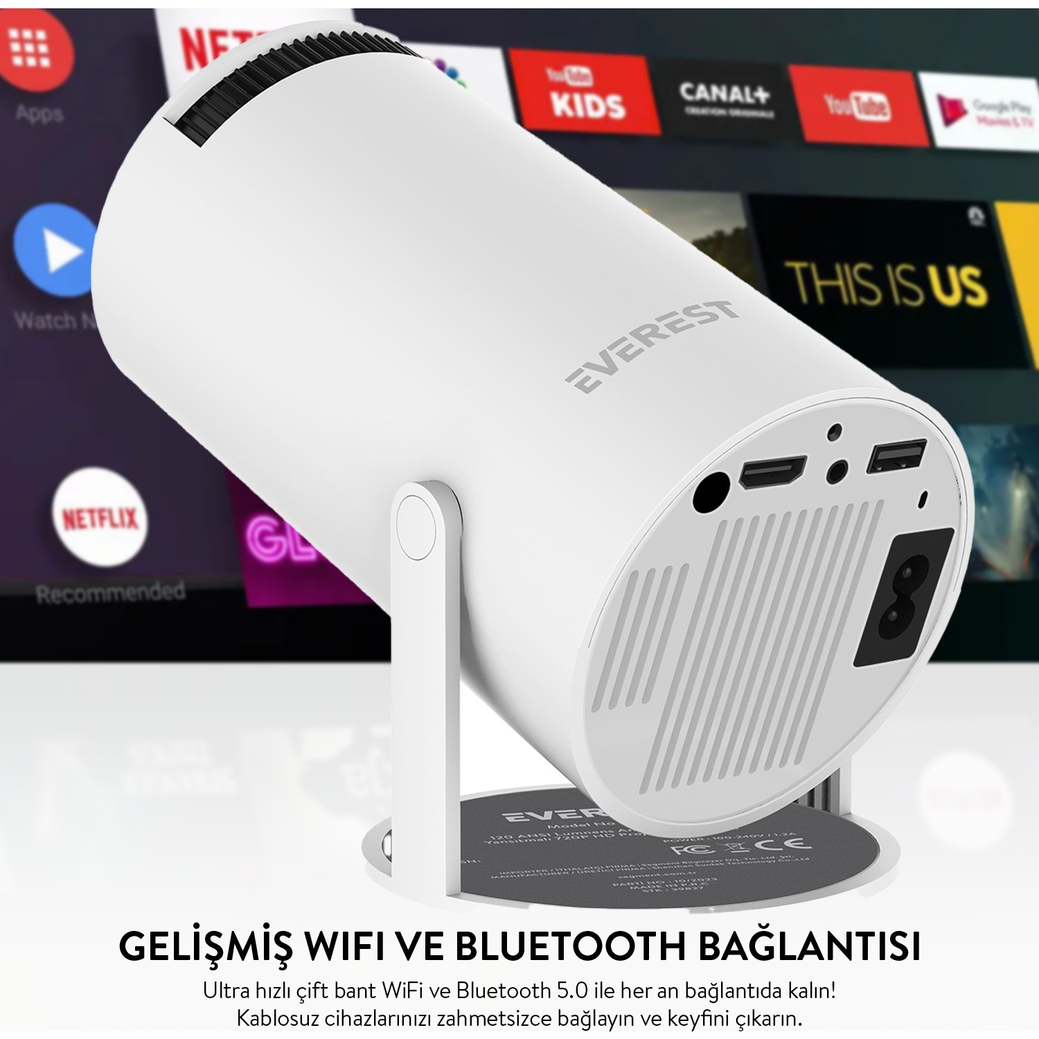 Everest PJ07 Taşınabilir Mini Ev Sinema Projeksiyonu 1280 * 720P Android + Bt+ Wifi Akıllı Projeksiyon Cihazı Hd