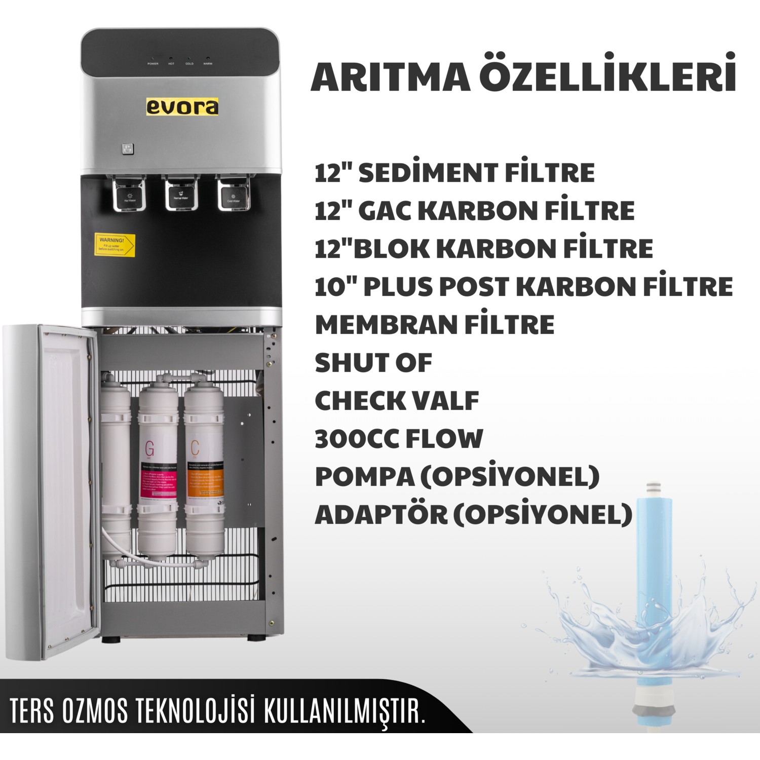 Evora Özel Seri Ev Tipi Ofis Tipi Sıcak Soğuk Arıtmalı Su Sebili Gri Premium