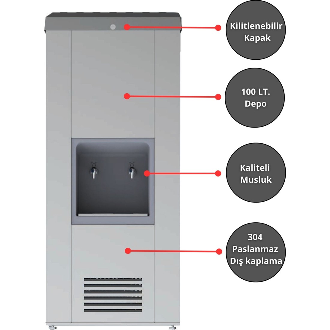 Evora Sanayi Tipi 100 Lt. Soğutmalı Arıtmalı Paslanmaz Endüstriyel Su Sebili