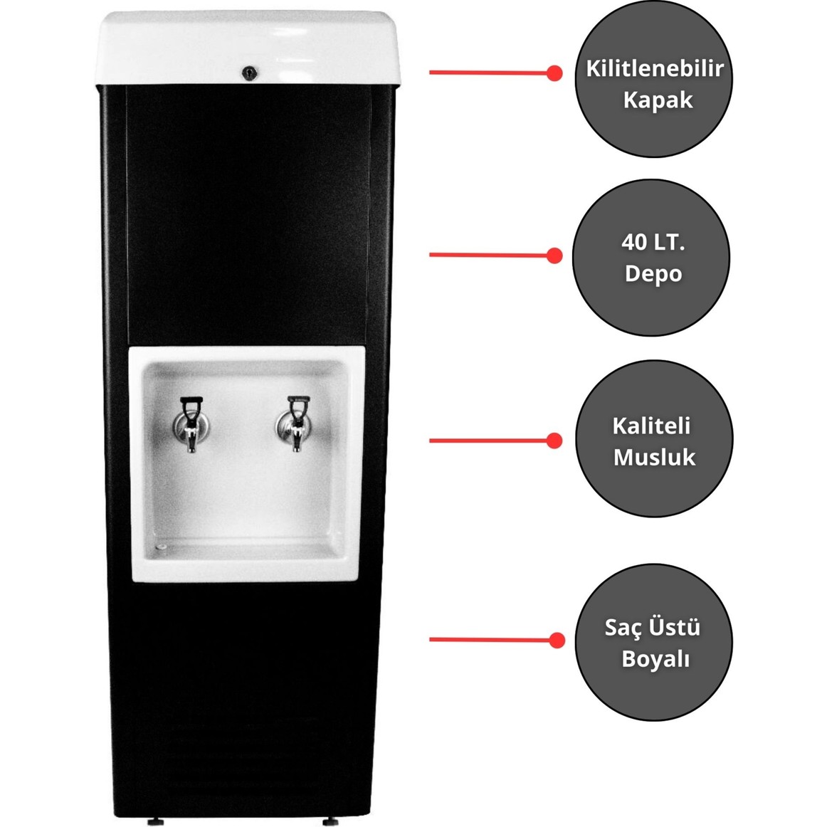 Evora Sanayi Tipi Sebil 40 Litre Soğutmalı Arıtmalı Siyah Endüstriyel Su Sebili