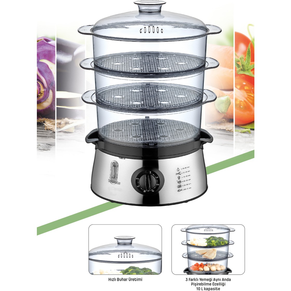 Goldmaster GM-7439 Dietist Buharlı Pişirici, sağlıklı ve lezzetli yemekler hazırlamanıza yardımcı olan bir mutfak aletidir. Bu buharlı pişirici sayesinde yiyeceklerinizin besin değerini koruyarak daha sağlıklı bir şekilde pişirebilirsiniz. Aynı zamanda buharlı pişirme yöntemi sayesinde yiyeceklerinizin doğal lezzetlerini de kaybetmezsiniz.
