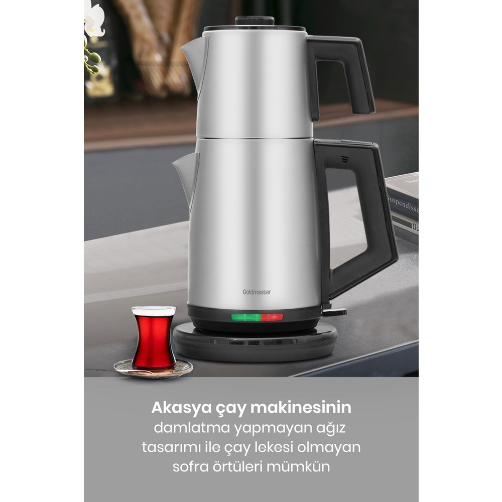 Goldmaster Inox Avantajlı Ikili Set Paketi Paslanmaz Çelik Çay Makinesi ve Su Isıtıcısı Tost Izgara Makinesi
