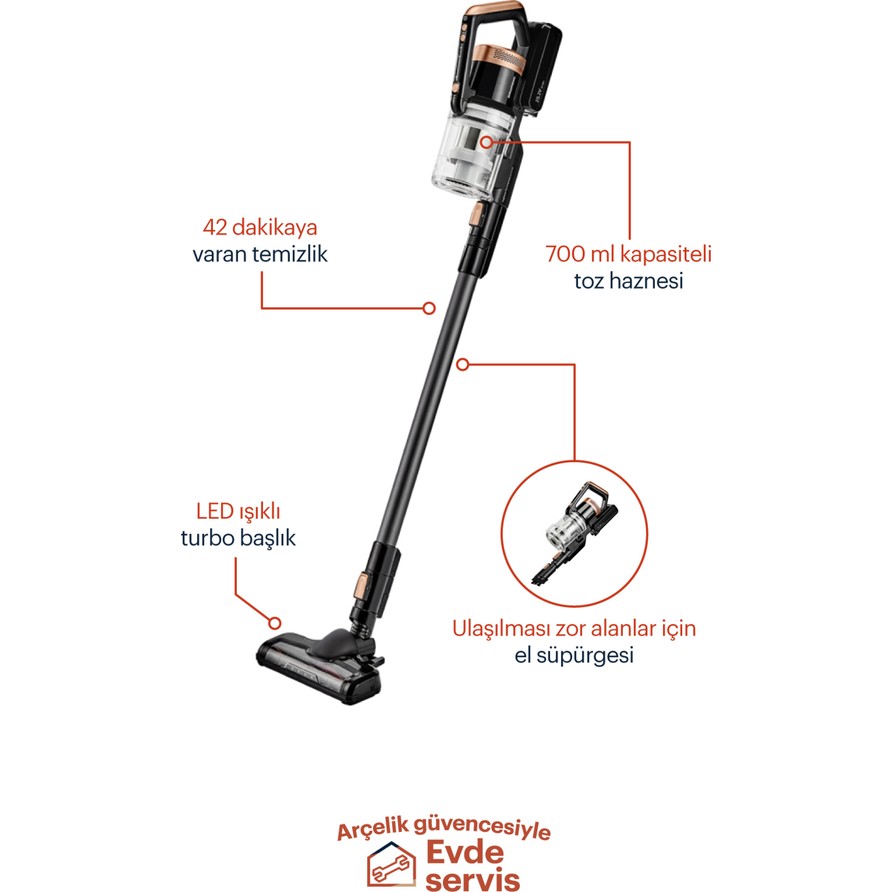 Fiyat performans ürünü. Günlük kullanım için aldım. İki kademeli ilk kademe az çekiyo gbi görünsede iyi çekiyor ihtiyacı karşılıyor sesi az gürültülü değil. Başlık kısmı baya esnek güzel desteklenmiş. Kaliteli uygun bişey aranıyorsa alınabilir. Şarj kullanıma ve hıza baglı. 3+1 evi rahat süpürür şarji bitmeden. Uzun kullanınca el kısmı biraz agrıyor değer ama kablosuz olmasına. Ürünün kendsi hafif.