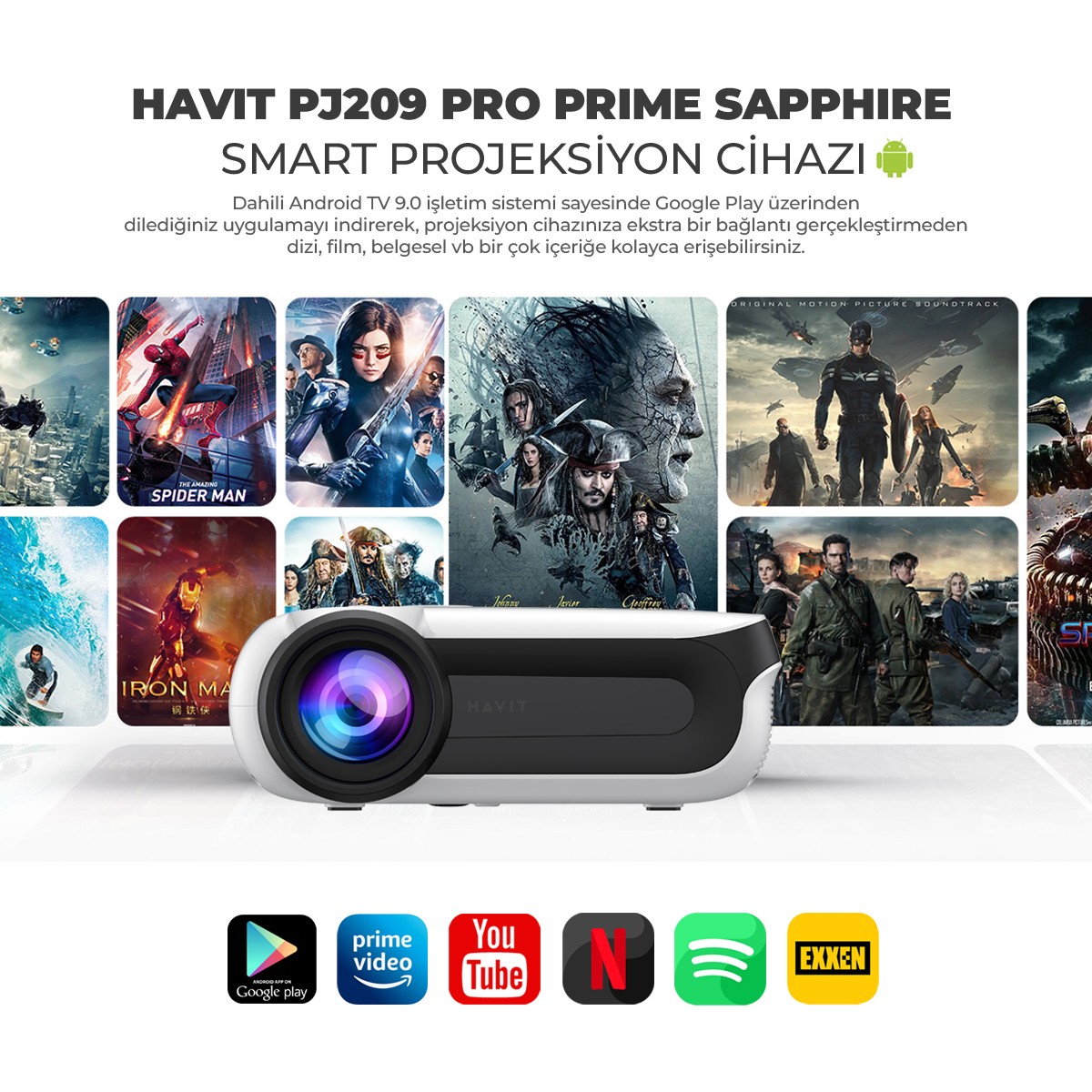 Havit PJ209 Pro Prime Sapphire Full Hd 1080P Smart Projeksiyon Cihazı Android Tv 9.0 – 350 Ansi