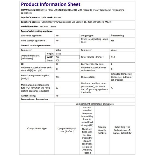 Hoover HOCG5T718EN1 E Enerji Sınıfı 442 Lt No Frost Buzdolabı