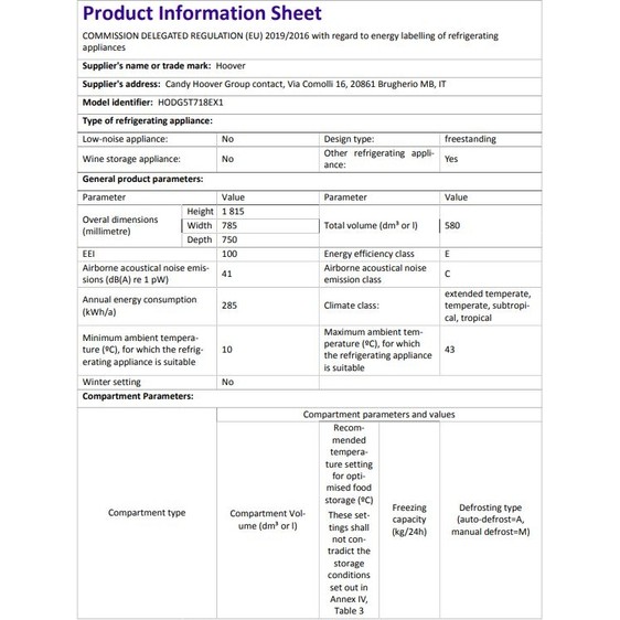 Hoover HODG5T718EX1 E Enerji Sınıfı 580 Lt No Frost Buzdolabı