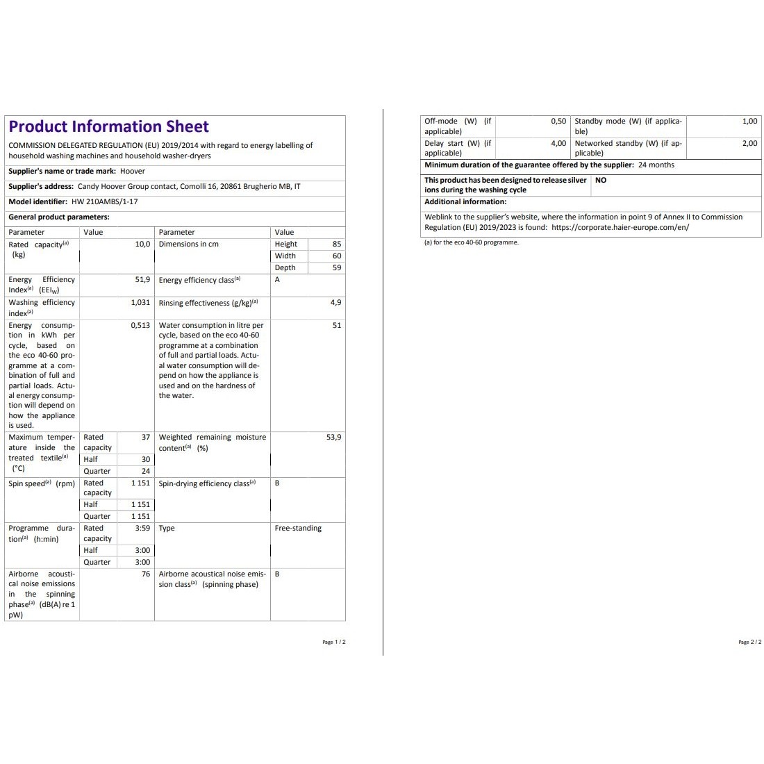 Garanti: Hoover Türkiye tarafından 2 yıl resmi garantilidir.