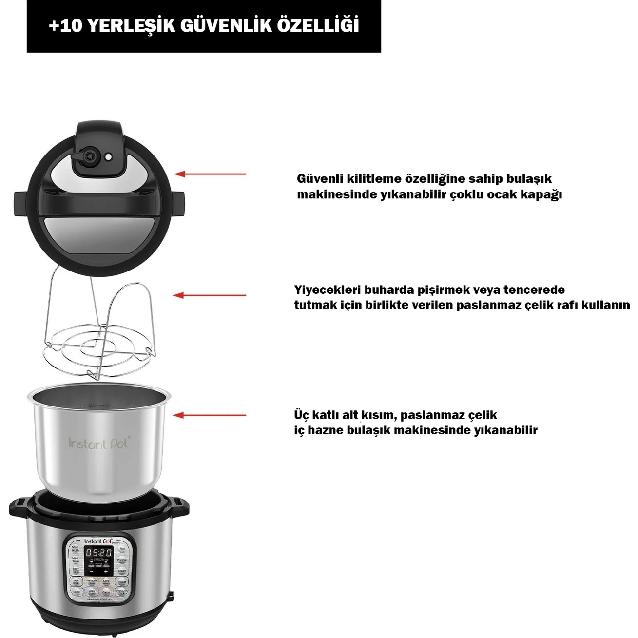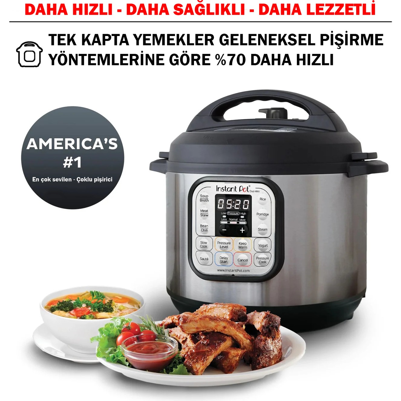 Instant Pot Duo Mini 7’si 1 Arada 3 lt Basınçlı Pişirici, mutfakta pratik ve hızlı yemekler yapmak isteyenler için ideal bir seçenektir. 3 litrelik kapasitesi sayesinde küçük miktarlarda yemek pişirmek için uygundur. 7 farklı pişirme fonksiyonu ile basınçlı pişirme, yavaş pişirme, pirinç pişirme, buharda pişirme, yoğurt yapma, ısıtma ve sauté gibi işlemleri tek bir cihazda gerçekleştirebilirsiniz. Ayrıca zaman ve enerji tasarrufu sağlayan bu ürün, programlanabilir özellikleri sayesinde yemeğinizi istediğiniz zamanda hazır hale getirebilir. Instant Pot Duo Mini, sağlam yapısı ve kolay temizlenebilir özellikleri ile kullanıcıların beğenisini kazanmaktadır.