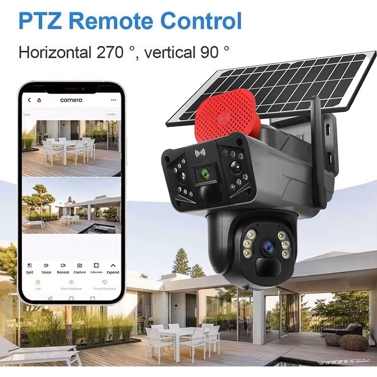 Bu güneş enerjili güvenlik kamerası, 6 MP çözünürlüğe sahip çift lensli PTZ özelliği ile yüksek kaliteli görüntüler sağlar. Hareket algılama özelliği sayesinde anlık bildirimler alabilir ve 128 GB’a kadar genişletilebilen SD kart ile kayıtlarınızı saklayabilirsiniz. Ayrıca sim kart desteği sayesinde herhangi bir internet bağlantısı olmadan da kameralarınıza erişebilirsiniz. Güneş paneli sayesinde enerji tasarrufu sağlayarak sürekli çalışma imkanı sunar.
