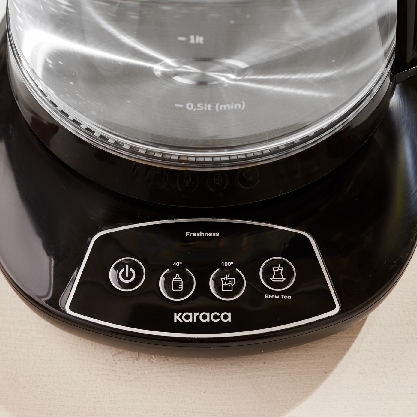 Karaca Çaysever 3 In 1 Konuşan Cam Çay Makinesi Su Isıtıcı ve Mama Suyu Hazırlama 1700W Black